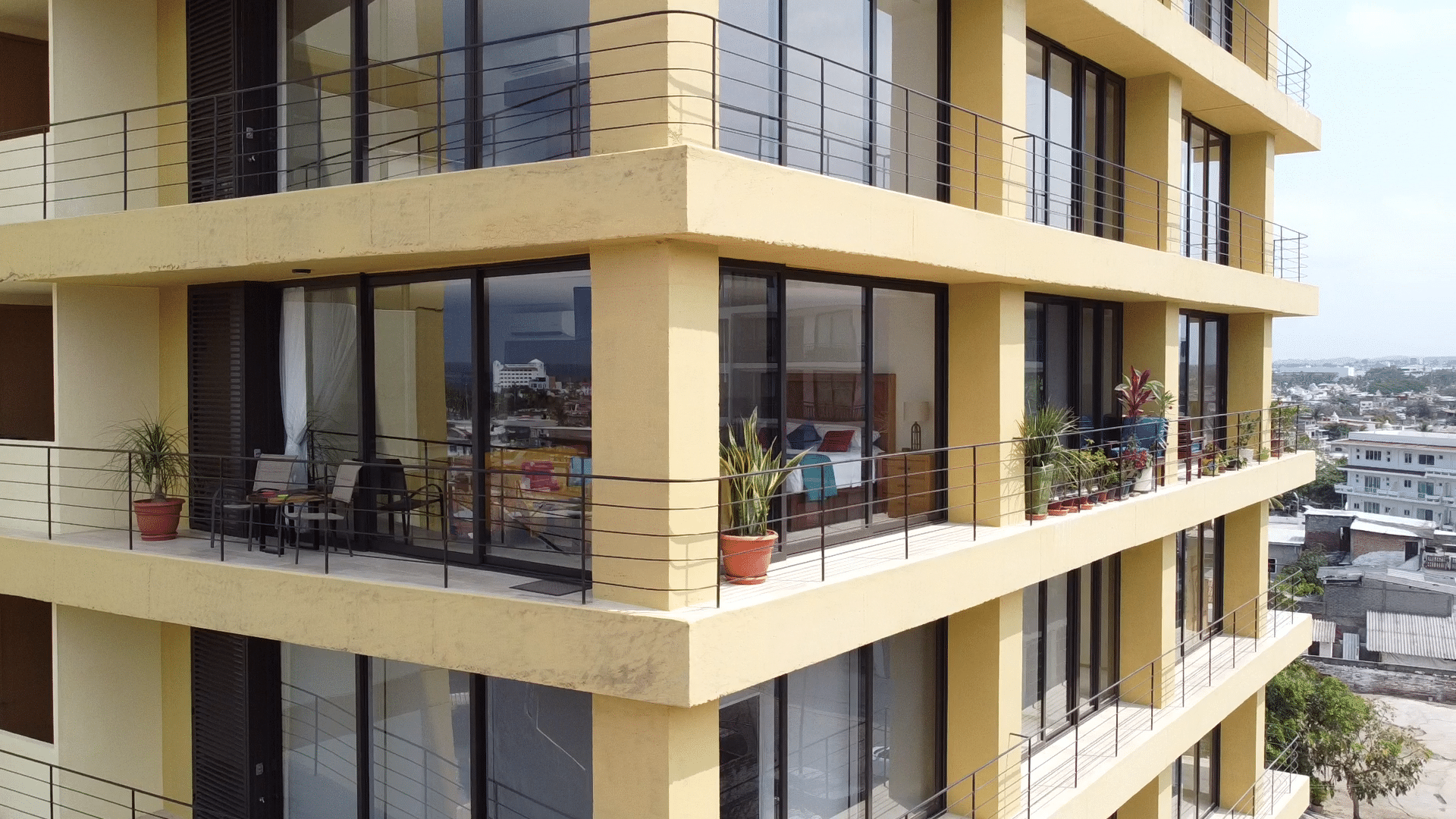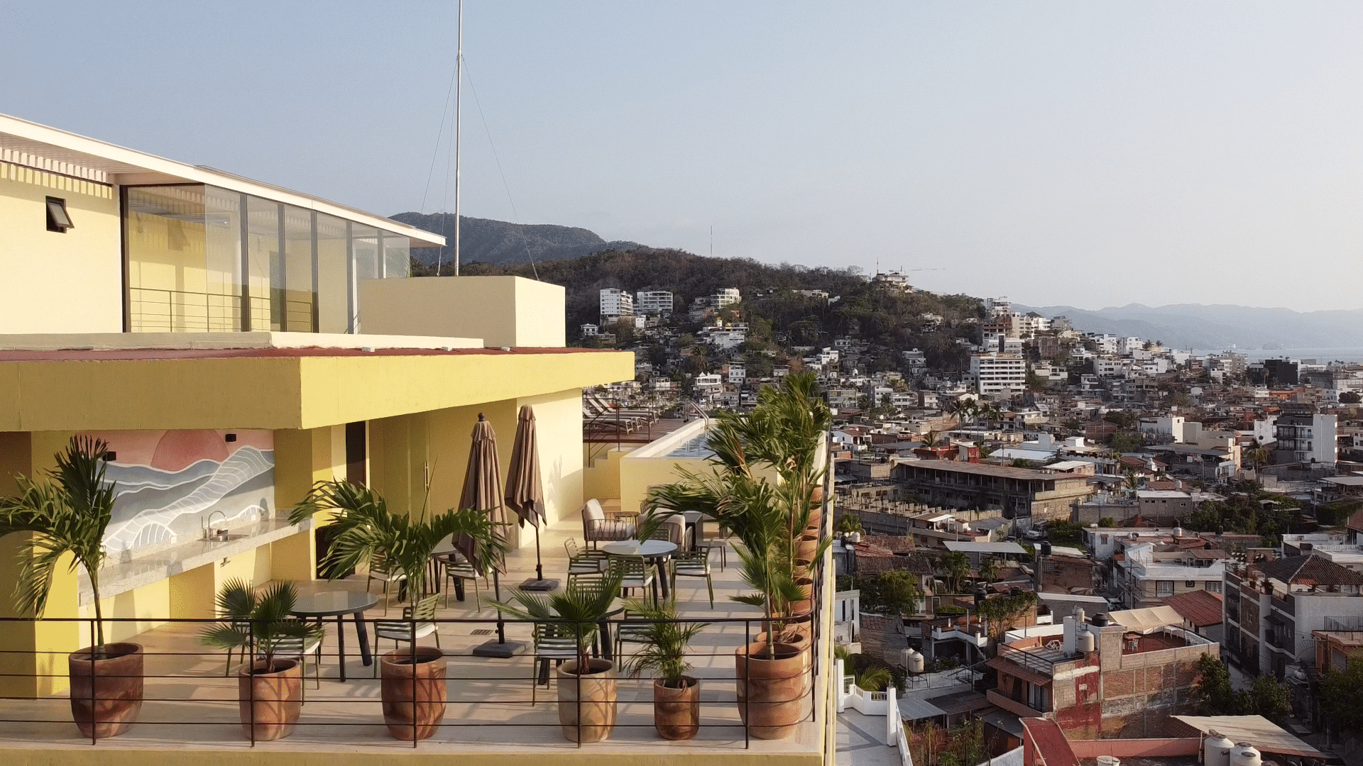 Experience Puerto Vallarta from a superior vantage point. Located near the stadium area beside Langosta Feliz, this corner suite offers floor-to-ceiling glass wrapping you in stunning mountain and city panoramas.